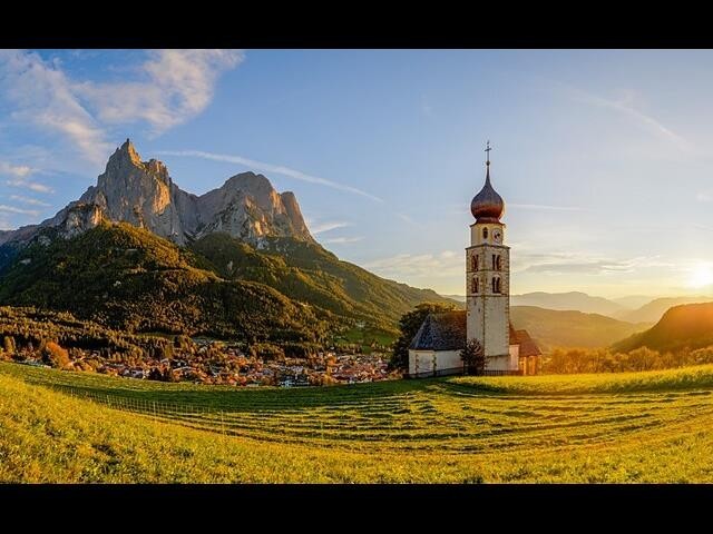 Das Kirchlein St. Valentin liegt inmitten von blühenden Wiesen oberhalb von Seis und bietet einen einmaligen Blick auf den Schlern. Die Kirche hat ihren Ursprung im 12. Jahrhundert und ist mit ihren gut erhaltenen Fresken auch aus kunsthistorischer Sicht einen Besuch wert.