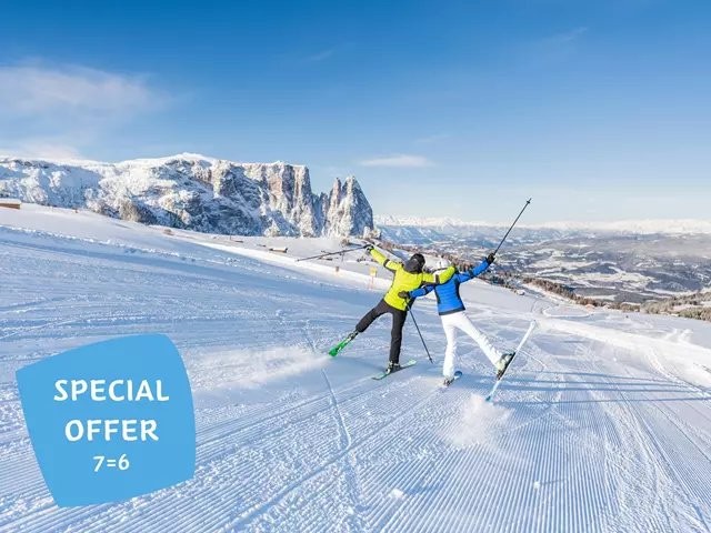 Es kann zwischen dem Skipass Seiser Alm/Gröden oder Dolomiti Superski gewählt werden