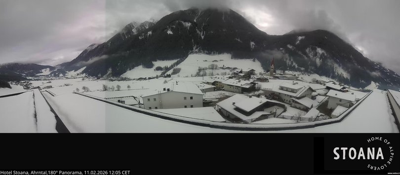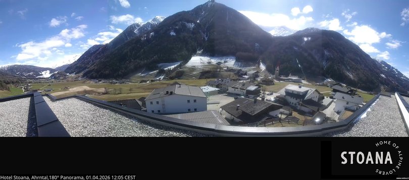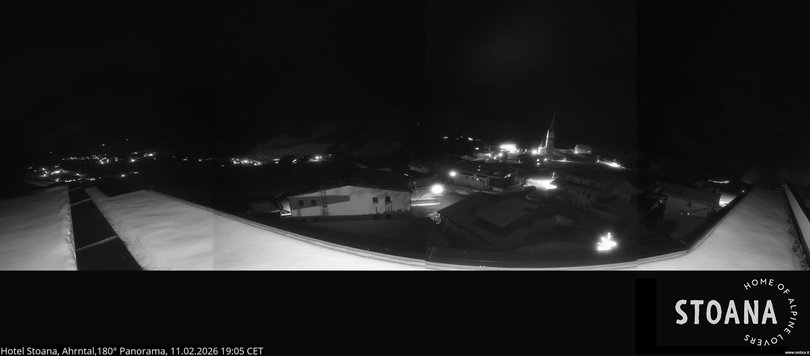 Diese Webcam ist auf dem Dach des Aparthotels Stoana und bietet einen 180-Grad-Blick auf das Dorf St. Jakob im Ahrntal. Im Zentrum des Bildes ragt der Glockenturm der Pfarrkirche von St. Jakob empor, rechts sieht man den Talbereich des Skiegebiets Klausberg, während links, im Nordosten, der Ausblick in Richtung des Dorfs St. Peter sowie zum Ende des Ahrntals geht. Die Webcam ist ideal, um in jedem Augenblick die Wetterbedingungen im Ahrntal zu entdecken.