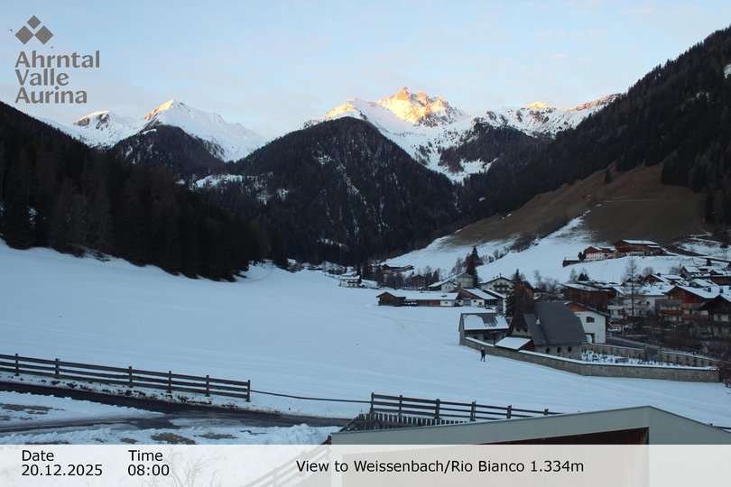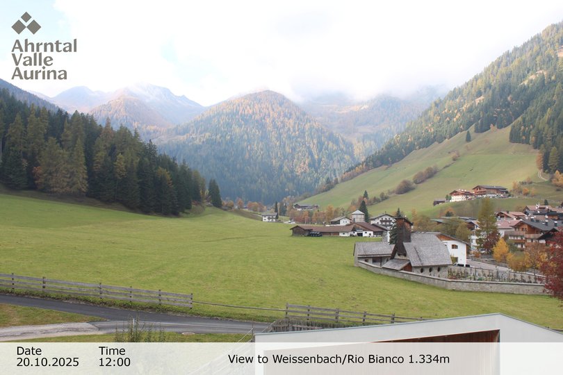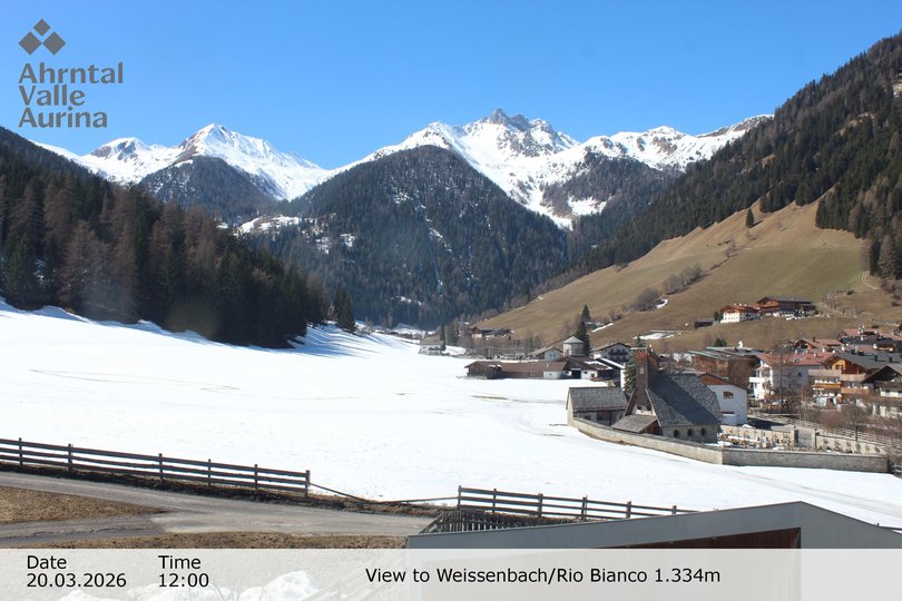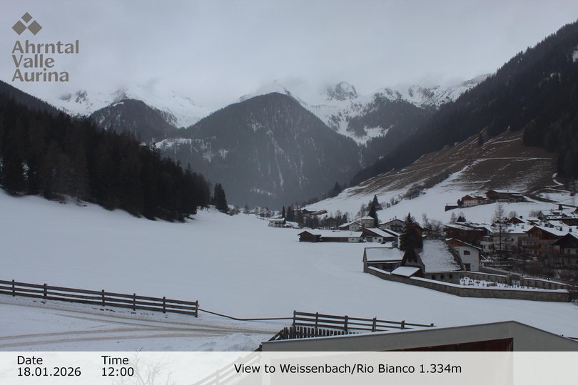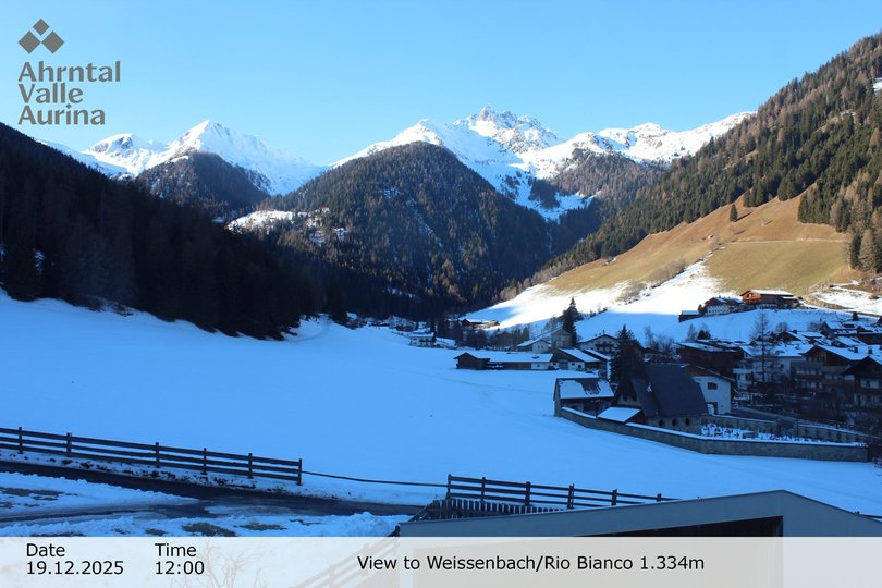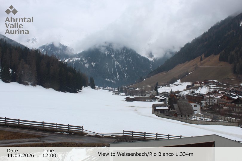 Panoramablick auf Weissenbach, schon immer ein bekannter Pilgerort, dank seiner Kirche aus dem XVI Jahrhundert. Das Dorf, das seinen Namen dem Gletscherbach mit weissem Wasser verdankt, welcher es durchzieht, ist ein beliebtes Urlaubsziel im Sommer und im Winter. Mit dieser Webcam sind die Wetter- und Schneebedingungen in Weissenbach immer nur einen Klick entfernt!