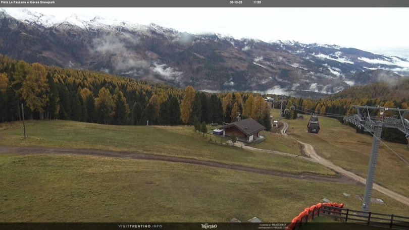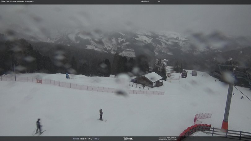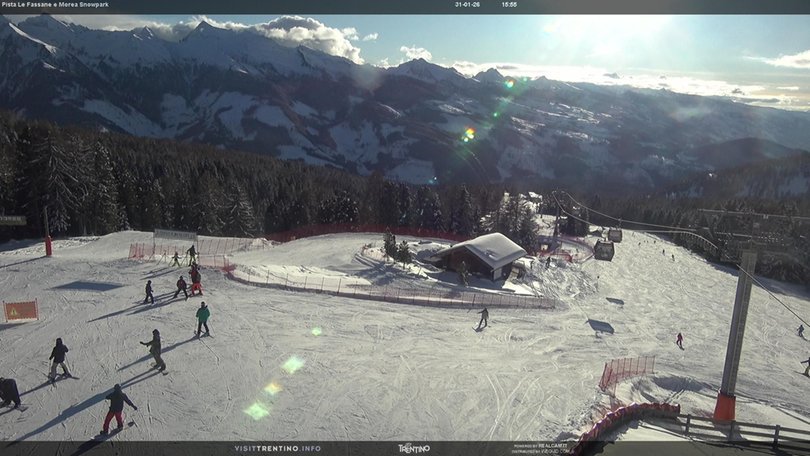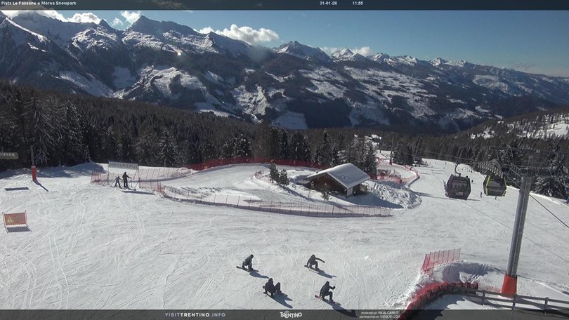 Die Webcam nimmt die Bergstation des Skilifts Le Fassane - La Morea, der die Piste Le Fassane bedient, ins Bild. Links der Eingang zum Morea Snowpark mit Anlagen und Boardercross-Strecken, die für Snowboarder und Freestyler jedes Fähigkeitsgrades geeignet sind. Die Seilbahn fährt auch die Cervo Fun Slope an, eine 400 Meter lange Piste für Kinder. Mit dieser Webcam können Sie überprüfen, ob die Seilbahn in Betrieb ist und außerdem die Wetterbedingungen auf dem Südhang des Skigebiets Alpe Lusia, im Herzen der unter UNESCO-Schutz stehenden Trienter Dolomiten, verifizieren.