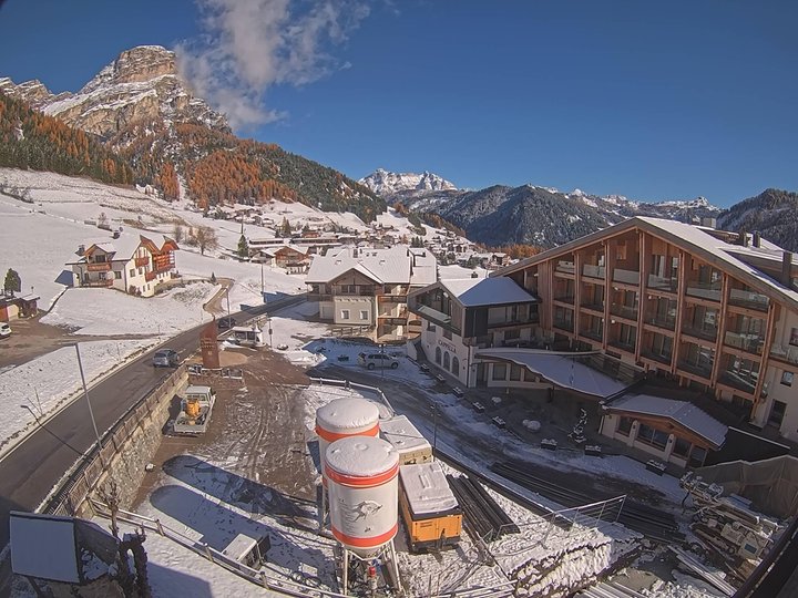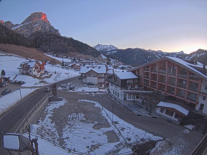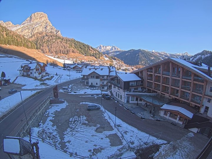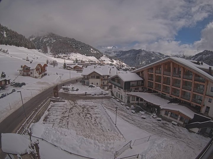 Diese Webcam bietet einen wunderschönen Blick auf die Dörfer Kolfuschg und Corvara. Im Vordergrund ist das Hotel Cappella, eines der exklusivsten Häuser in den Dolomiten sowie in den ganzen Alpen, zu sehen. Im Hintergrund links kann bei gutem Wetter der Sassongher, einer der beeindruckendsten Bergen der Puezgruppe, bewundert werden. Im Hintergrund mittig sehen Sie die Fanesgruppe. Beide, sowohl der Sassongher als auch die Fanesgruppe sind Protagonisten des Hochabtei-Panoramas. Konsultieren Sie diese Webcam, um die Wetterbedingungen in der Hochabtei, im Herzen der famosen südtiroler Dolomiten, zu entdecken.