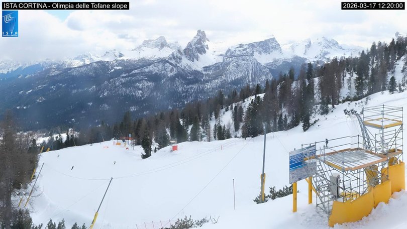 Blick auf die Piste Stratofana Olimpica im Skizentrum Socrepes-Pocol-Tofana-Falzarego. Diese ist seit 1993 Teil des jährlichen Alpinen Skiweltcups der Frauen, sowohl für Abfahrt als auch für Super-G. Die Piste, auch bekannt als Olimpia delle Tofane, verdankt ihren Namen den Olympischen Winterspielen 1956, in welchen auf ihr das Abfahrtrennen der Männer stattfand. Sie ist 2.402m lang und deckt einen Höhenunterschied von 760m ab, mit einer maximalen Steigung von ganzen 56,1%! Diese Webcam ist der ideale Beobachtungspunkt, um die Wetter- und Schneebedingungen im Gebiet von Cortina d’Ampezzo zu entdecken.