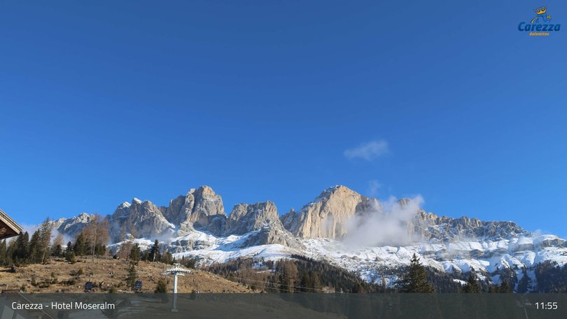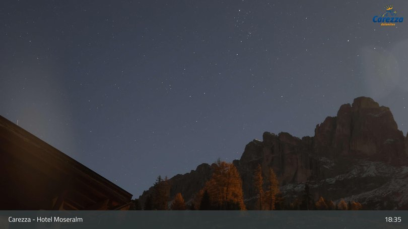 Webcam des Hotels Moseralm in Carezza/Karersee, im Eggental. Im Hintergrund, je nach Aufnahme, die Rosengarten- oder Latemar-Gruppe in den Dolomiten, die auch für das optische Phänomen namens Alpenglühen bekannt ist, das die Gipfel bei Sonnenauf- und Sonnenuntergang rot und lila färbt. Im Sommer bietet das Gebiet Karersee den Carezza Bike Trail für MTB-Liebhaber, verschiedene Wanderwege und natürlich den Karersee. Im Winter hingegen, erwartet Sie das Skigebiet Carezza mit 40km Pisten. Sehen Sie sich diese Webcam an, um die Wetter- und Schneebedingungen in Karersee zu entdecken.