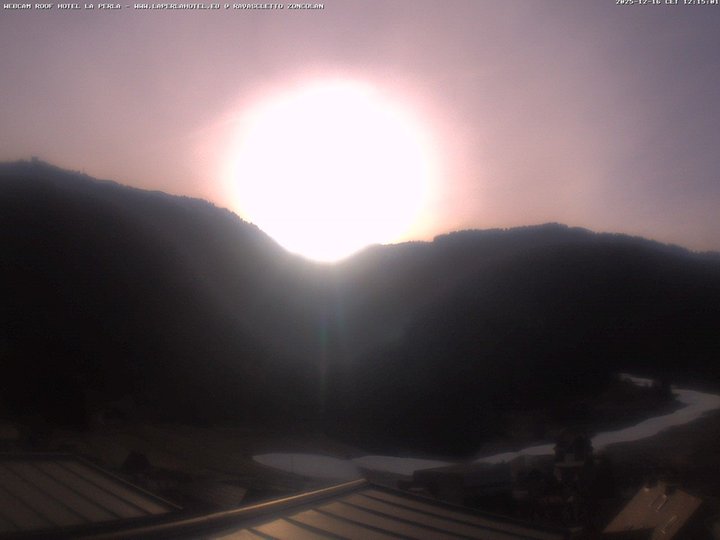 Panorama vom Hotel La Perla in Carnia, im Gebiet der Friauler Dolomiten. Installiert auf dem Dach des Hotels, bietet diese Webcam verschiedene Ausblicke sowohl auf Ravascletto als auch auf den Monte Zoncolan. Man sieht auch die Gondel, welche im Winter zu den Skipisten und im Sommer zu zahlreichen Wanderwegen führt.