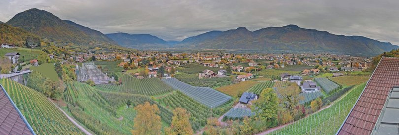Die Webcam, installiert auf dem Dach des Panorama Hotel Garni Bühlerhof in Lana, zeigt direkt ins Tal und ermöglicht es, im Hintergrund die Sarntaler Alpen mit dem Ifinger-Gipfel, der Mutspitze sowie dem Hirzer zu betrachten. Am Fuße des Hotels ist der pittoreske Wanderweg Brandis Waalweg zu erspähen, der durch Wälder, Weinberge und über Obstanlagen führt, die Gemeinde Lana überblickend. Etwas weiter weg sind hingegen die Gemeinden Tscherms und Vöran. Den Bergen zu Füßen liegt das Meraner Gebiet mit den Dörfern Tirol und Schenna. Konsultieren Sie diese Webcam, um in Echtzeit die Wetterbedingungen in diesem Bereich Südtirols, im Süden von Meran, zu erfahren.