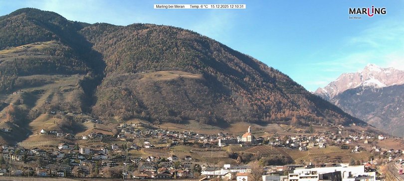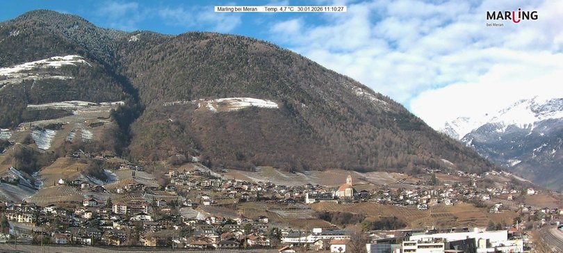 Die Webcam befindet sich am Sportzentrum von Marling. Sie zeigt einen kleinen Teil der Gemeinde, nämlich die Pfarrkirche sowie den Marlinger Berg. Rechts beginnt die Texelgruppe im Naturpark Texelgruppe. In Richtung Osten gedreht, ist diese Webcam ideal, um den Sonnenaufgang zu bewundern und in jedem Moment die Wetter- und Schneebedingungen in diesem eindrucksvollen Ort in Südtirol zu kontrollieren.