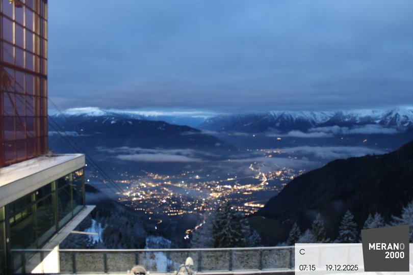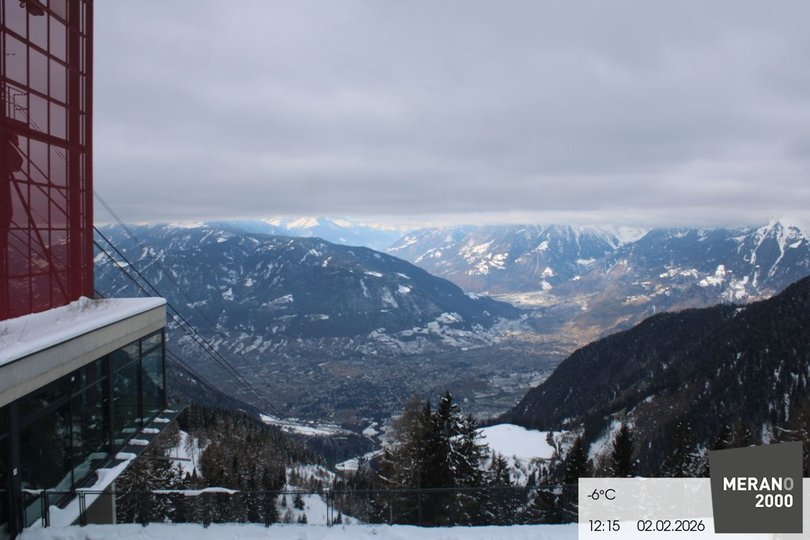 Die Webcam befindet sich an der Bergstation der Seilbahn Meran 2000, einer der modernsten Skilifte der Alpen. Die Station wird auch "Terrasse von Meran" genannt, denn sie bietet einen herrlichen Ausblick auf die Thermalstadt und die umliegenden Gipfel. Meran 2000 mit seinem Snowpark ist ein Wintersport-Paradies (Ski, Snowboard, Schlitten und Skilanglauf). Im Sommer gibt es zahlreiche Wandermöglichkeiten, wie die zu den Steinmännern, den Klettersteig Heinz Holzer und Touren mit dem Mountainbike. Diese Webcam ist ideal, um die Wetter- und Schneebedingungen in Meran direkt zu verfolgen.