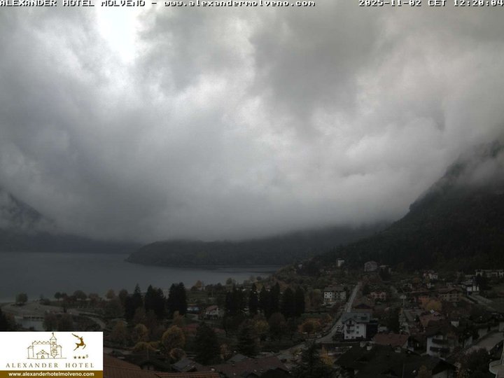 Panoramablick auf Molveno und seinen bekannten See, rechts erheben sich vom Strand von Molveno majestätisch die Brentner Dolomiten, bis auf die 3.151m der Cima Brenta. Diese Webcam, installiert auf dem Dach des Hotel Alexander, ist ideal, um die Wetterbedingungen des Gebiets des “schönsten Sees Italiens”, was die Qualität des Wassers und des Strandes und die Dienste des Badebetriebs betrifft, zu beobachten.