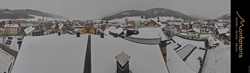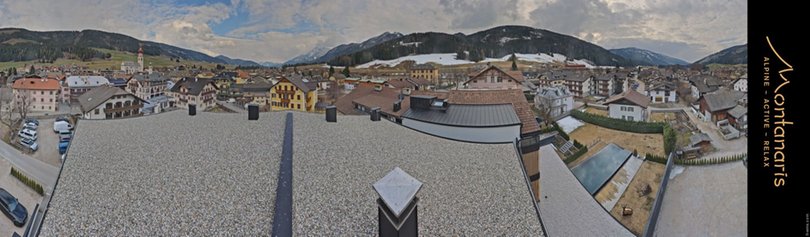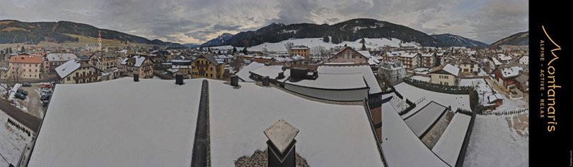 Die am Hotel Montanaris in Niederdorf installierte Webcam bietet einen Blick auf dieses Dorf im Hochpustertal. Niederdorf ist von zahlreichen Berggipfeln umgeben, die im Hintergrund des Bildes zu sehen sind: von links nach rechts der Haunold im Skigebiet 3 Zinnen Dolomiten, die Birkenkofelgruppe, der Serla-Berg, der Herrstein – zu dessen Füßen der Pragser Wildsee liegt – sowie der Kronplatz. Die Webcam zeigt die Wetterverhältnisse in dieser beliebten Urlaubsregion im Pustertal, die sowohl für Wintersport als auch für Sommerwanderungen geschätzt wird.