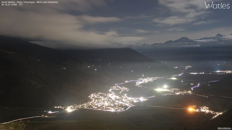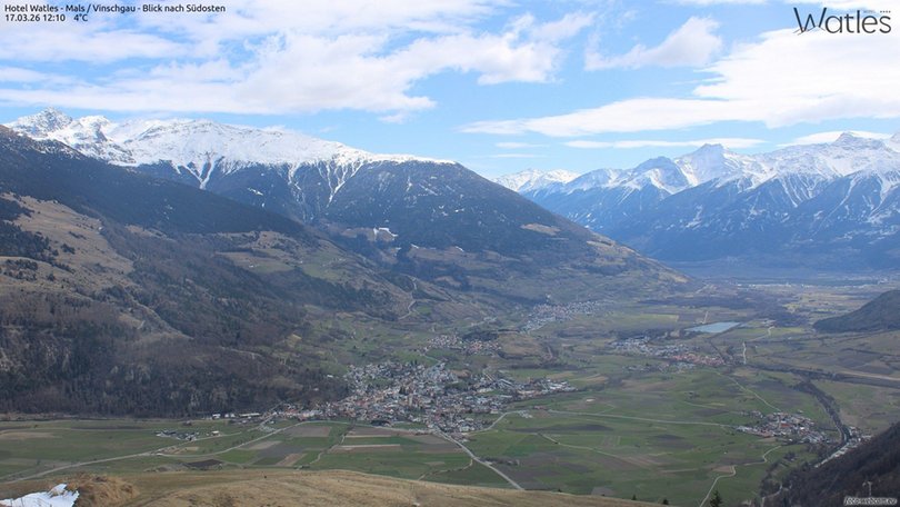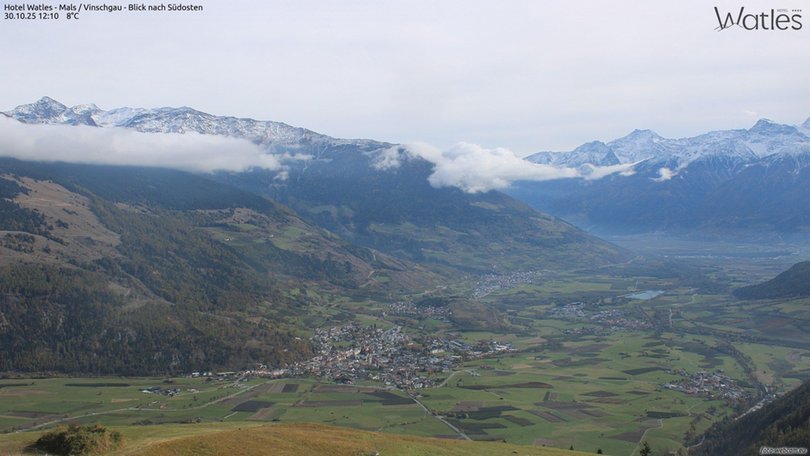 Die Webcam befindet sich in Mals, auf dem Dach des Panoramahotels Watles. Sie blickt nach Südosten auf den Vinschgauer Talkessel und die Ortlergruppe. Der Vinschgau in Südtirol ist ein ideales Ziel zum Skifahren, Mountainbiken, für Motorradtouren und vieles mehr.
