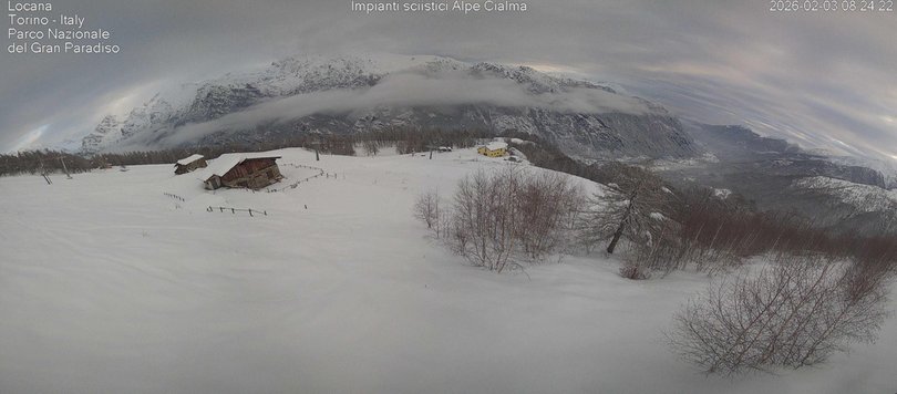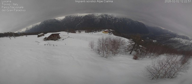 Panoramablick auf die Alpe Cialma. Von der Webcam der Alpe Cialma, in Carello, ist es möglich einen Teil der Pisten des Skigebiets Alpe Cialma zu sehen, welche sich im Sommer in grüne Alpenwiesen verwandeln, mit dem Valle Orco im Hintergrund. An den Grenzen des Nationalparks Gran Paradiso gelegen, umrahmen die Berge von Gran Paradiso und Ribordone die Alpe Cialma. Unter den bekanntesten Gipfeln, die bewundert werden können, befinden sich (von rechts nach links) Monte Colombo, Moncimour, Becco di Valsoera, Torre del Gran San Pietro, Roccia Viva, Becca di Gay und Becco della Tribolazione. Sehen Sie sich diese Webcam an, um die Wetter- und Schneebedingungen in diesem Teil der Turiner Alpen zu entdecken.