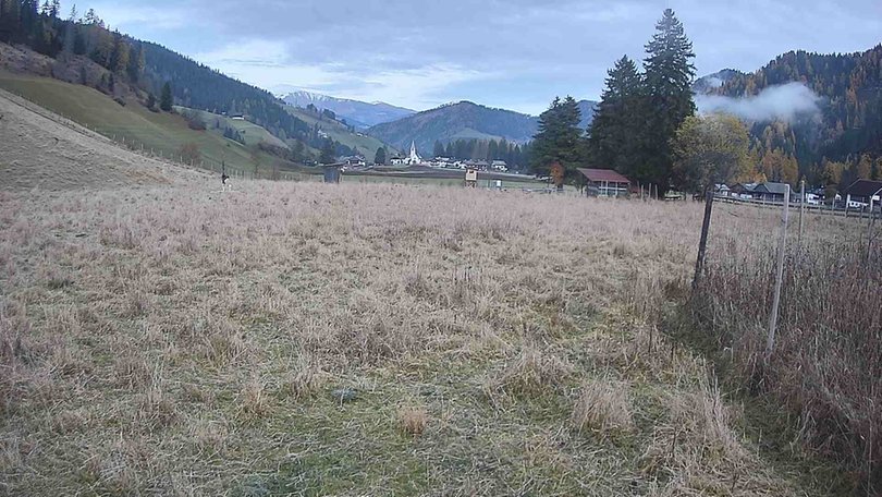 Die Webcam bietet einen herrlichen Ausblick auf Teile des Pragstertals. Im Hintergrund der Berg Pfannhorn, eines der traditionellen Wanderziele im Hochpustertal. Im Hintergrund des Bildes ist die Ortschaft Sankt Veit in Prags zu sehen, mit seiner aus dem 14. Jahrhundert stammenden, gotischen Pfarrkirche. Im Vordergrund ist die Einzäunung des Damhirschgeheges zu sehen, die neben dem Hotel Trenker, an dem die Webcam installiert ist, steht. Mit etwas Glück, sind die Tiere zu sehen. Diese Webcam ist ideal, um zu entdecken, wie das Wetter in dieser Zone des Naturparks Fannes-Sennes-Prags in Südtirol ist.