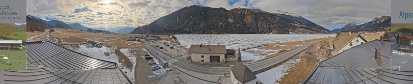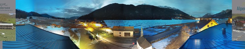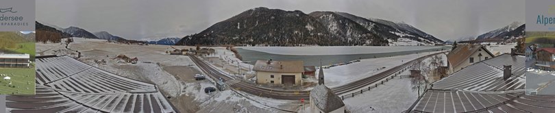 Die Webcam, die am Hotel Alpenrose angebracht ist, bietet einen Panoramablick auf den Haidersee (auf Italienisch Lago di San Valentino alla Muta), einen 90 Hektar großen Bergsee, der ein Paradies für Fischereiliebhaber, Schlittschuhläufer und Snowkite-Fans ist. Im Vordergrund die Kirche der Allerheiligsten Dreifaltigkeit. Im Hintergrund links die beiden Gipfel Königsspitze und König Ortler, der mit seinen 3.905 Metern der höchste Berg Südtirols ist. Rechts der Elferkofel und, in der Mitte, Teile des Ski-, Rad- und Wandergebiets Schönebene-Haider Alm-Reschen. Diese Webcam ist ideal, um in jedem Moment die Wetterbedingungen in dieser Zone des Vinschgaus zu kennen.