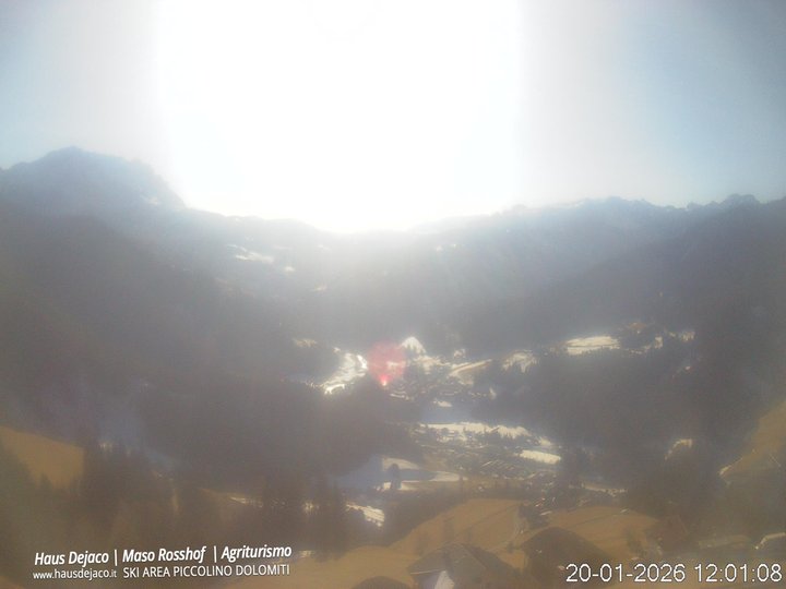 Blick auf die Aufstiegsanlage von Pikolein, Teil von St. Martin in Thurn. Die Gondel Piculin führt zum Piz de Plaies von welchem man nach St. Vigil abfahren kann. Diese Webcam bietet einen wunderbaren Blick auf St. Martin in Thurn mit dem Fluss Gader. In schönen Tagen zieht der Blick weiter in Richtung Süden entlang des Gadertals und im Hintergrund kann man auf der linken Seite auch den Rosskopf erkennen. Diese Webcam, installiert auf dem Rosshof – Haus Dejaco, ist ideal, um die Wetter- und Schneebedingungen im Gadertal zu entdecken.