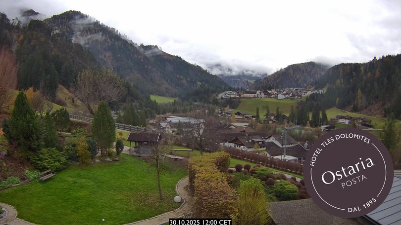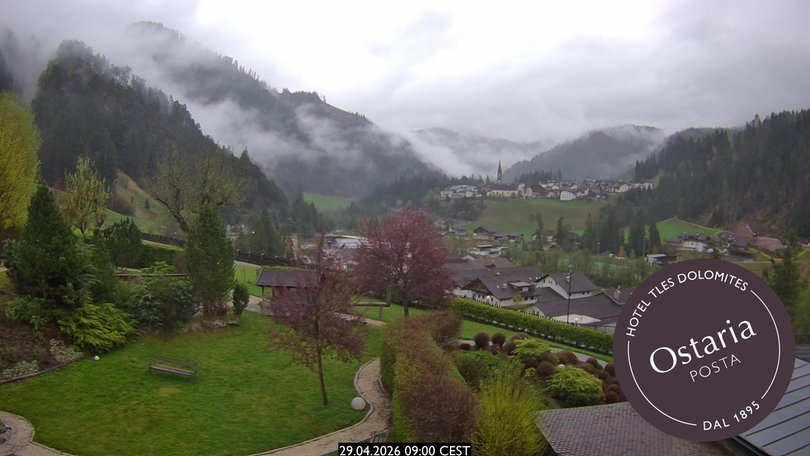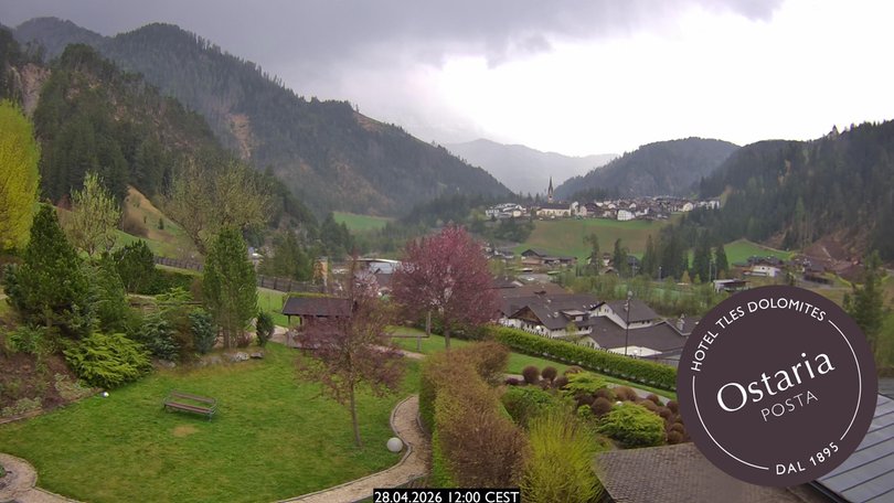 Diese Webcam befindet sich auf dem Dach des Hotels Ostaria Posta in Pikolein, im Gadertal. Ihr schöner Bildausschnitt zeigt die Gemeinde Sankt Martin in Thurn und ihren Kirchturm. Auf dem Bild in der Ferne leicht rechts sieht man den Turm des Schlosses Thurn (Ćiastel de la Tor), Sitz des Museum Ladin. Dort geht es um die ladinische Kulturgeschichte und das Leben der Ladiner in den Dolomiten. Am Horizont ist ein Stückchen der Berggruppe Heiligkreuzkofel zu sehen mit dem Berg Rosskopf, der das Tal dominiert. Diese Webcam ist ideal, um die Wetterbedingungen im Gadertal zu entdecken.