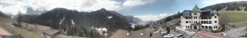 Die Webcam befindet sich auf dem Dach der Dependance des Hotels Ansitz Jakoberhof. Auf dem Bild lässt sich die charakteristische Architektur des Hauptgebäudes des Hotels erkennen, das sich im Ortsteil St. Jakob (St. Ulrich) in Gröden befindet. Das Dorf St. Jakob, das am Fuße des Picberges liegt, stellt eine sonnige Ruheoase dar, nur zwei Kilometer vom Dorf St. Ulrich entfernt. Links vom Hotel sieht man das Rittner Horn und noch weiter links die Gipfel, hinter denen sich die Seiser Alm befindet. Gefolgt von der Plattkofel, der Langkofel und schließlich der Sellagruppe.