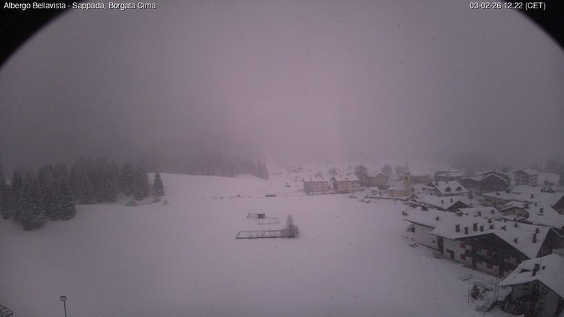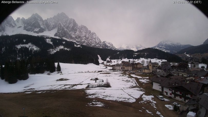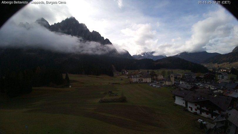 Die Webcam zeigt, vom Hügel Bellavista in Cima Sappada aus, in Richtung der Berge Monte Siera und Creta Forata in den Karnischen Alpen. Der Creta Forata hat seinen Namen aufgrund des charakteristischen Lochs, das auf 2.462 Höhenmetern durch seine Spitze verläuft. Rechts auf dem Bild sieht man ein Stückchen der Altstadt von Bladen mit dem Kirchturm der Sankt-Oswald-Kirche. Diese Webcam des Hotels Bellavista ist ideal, um zu jedem Zeitpunkt die Wetterbedingungen in diesem wunderschönen Ort in Friaul-Julisch-Venetien, an der Grenze zu Venetien, zu entdecken.