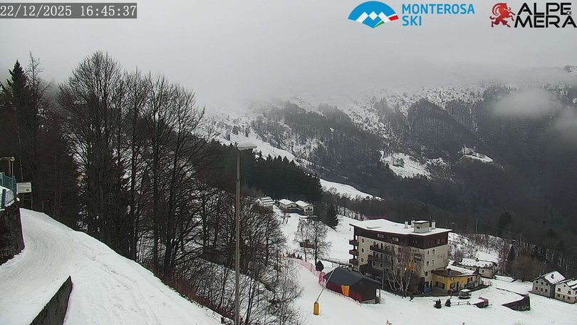 Die Webcam befindet sich am Eingang der Ortschaft Mera, von Scopello kommend. Rechts die Berghütte Camparient, direkt auf der Skipiste und 100 Meter entfernt von der Station des Sessellifts Scopello-Mera. Im Hintergrund kann ein Blick auf die Alpe von Mera erhascht werden, am Hang des Monte Rosa. Diese Webcam ist ideal, um die Wetter- und Schneebedingungen in diesem Gebiet des Valsesia zu jeder Zeit zu beobachten.