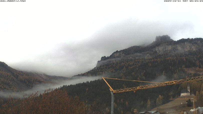 Panoramawebcam von Vigo di Fassa in Richtung des Roda di Vael (2.806m), Teil der Rosengartengruppe. Auf der rechten Seite die Kirche der Santa Giuliana, gebaut im XV Jahrhundert, und unten rechts die Gondel Ciampedie-Rosengarten. Mit dieser live cam, installiert auf dem Dach des Al Piccolo Bio Hotel, können Sie die Wetterbedingungen im Fassatal erfahren und entdecken, wann der erste Schnee den Rosengarten weiß färbt.