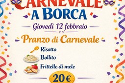 Carnival Lunch Menu: • Risotto • Boiled meat • Apple fritters Fee: €20 Confetti, joy, and the perfect excuse to spend time together. Borca – ARCI Club Reservations and home delivery: Patti 340 4695219
