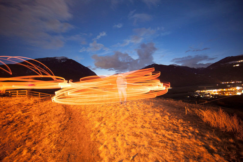 Children and adults – though traditionally only young men – hold whips in their hands, on which are placed round or square wooden disks. These disks are placed inside a bonfire until they glow bright red, and are then thrown into the valley using a special technique and accompanied by the pronouncement of ritual spells and the dedication of good wishes, mostly to one’s beloved. The farther a disk flies through the dark, the more luck it is said to bring to the beloved.