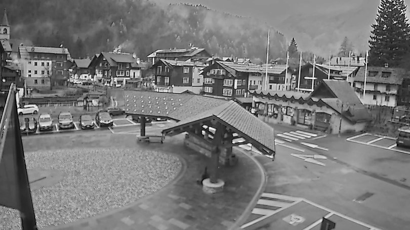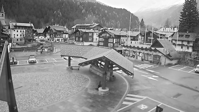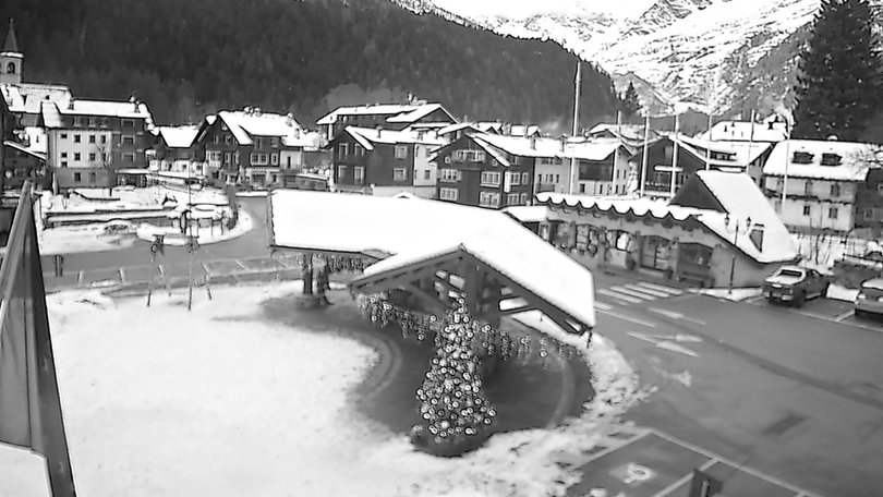 The webcam is located on the roof of the building that houses the seat of the Town Hall of Macugnana. Through this webcam, one can see the Town Hall Square, where the Christmas market of Macugnaga takes place in winter: characteristic Christmas stands at the foot of the imposing East Face of Monte Rosa. Macugnaga, with its hamlets, is a starting point for countless hikes in both, summer and winter, as well as for the chairlift to the Belvedere and the cable way that leads to the vicinity of Lake Smeraldo.