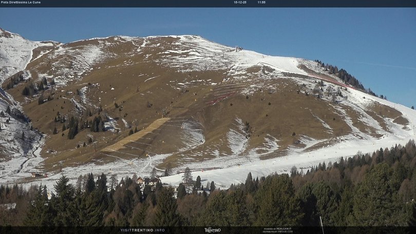In winter, from this webcam, you can admire two slopes of the Alpe Lusia ski area. On the left the Direttissima, a black ski slope characterized by two steep walls clearly visible, on the right the easier Le Cune ski slope that makes a wide curve passing near the Lusia Refuge. In summer, Alpe Lusia is a well-equipped hiking oasis in Trentino. The webcam is perfect for knowing in real-time the weather conditions of this area.