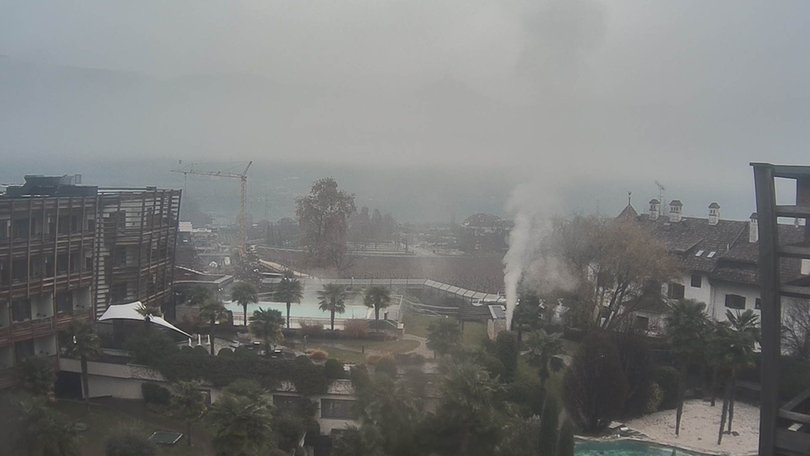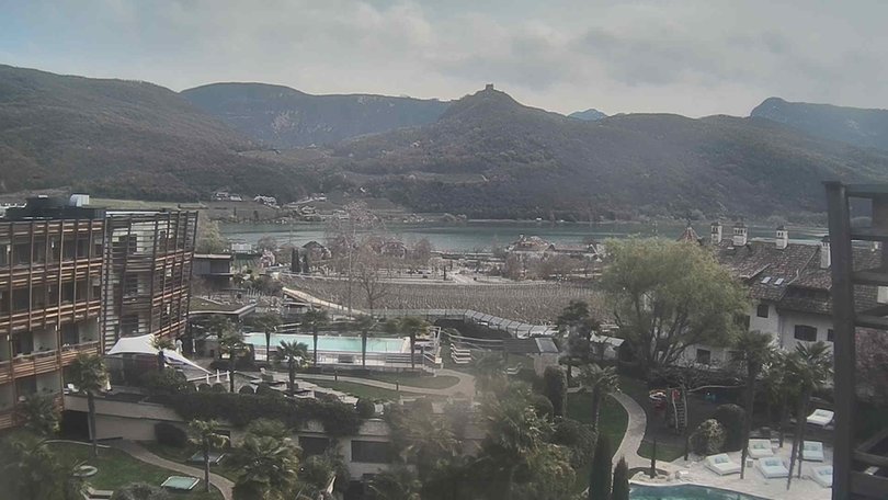 The webcam is located at the Hotel Seeleiten in Caldaro / Kaltern on the Wine Route and frames Lake Caldaro / Kalterer See, the largest bathing lake in South Tyrol / Südtirol and the warmest in the Alps. In the background, in the centre, you get a glimpse of the ruins of Castelchiaro / Leuchtenburg, an ancient castle on top of a hill in Monte di Mezzo / Mittelberg. In the foreground, part of the hotel with its garden, full of palm trees and framed by vineyards, as is typical in the south of South Tyrol. Check out this webcam to see the weather conditions live in this area south of Bolzano / Bozen.