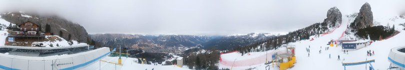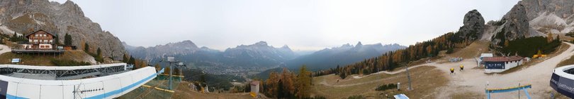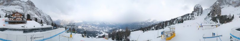 View from the mountain station of the chair lift Piè Tofana – Duca D’Aosta in the Ski resort Socrepes-Pocol-Tofana-Falzarego. On the left, you may see the mountain hut Duca d’Aosta, while in the middle of the picture a spectacular view on the centre of Cortina d’Ampezzo is offered, with the Monte Cristallo, the Sorapiss and the Monte Antelao standing out in the background. This webcam is the perfect observation point to discover the weather and snow conditions in the ski area of Cortina.