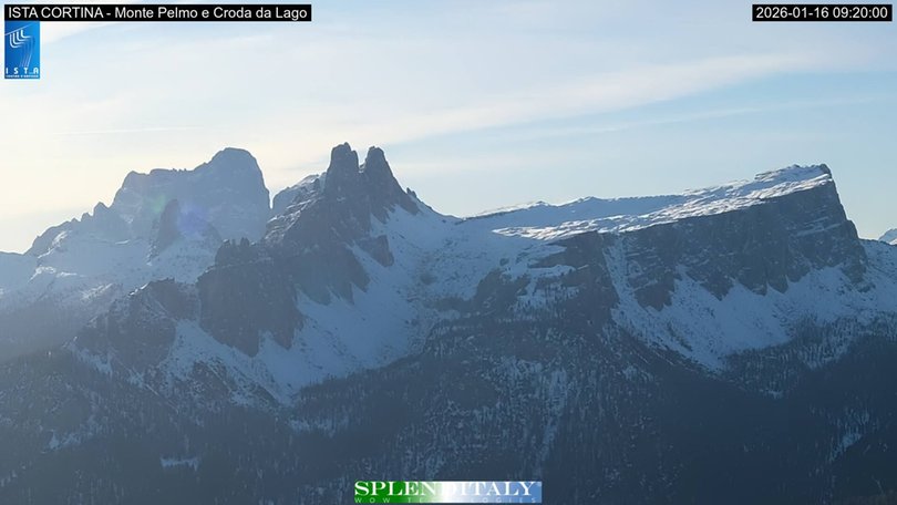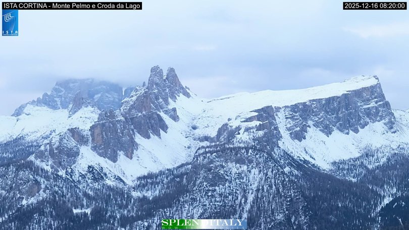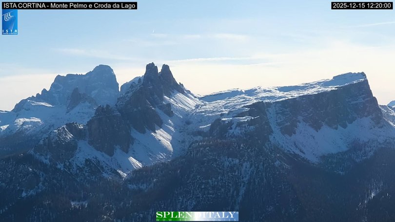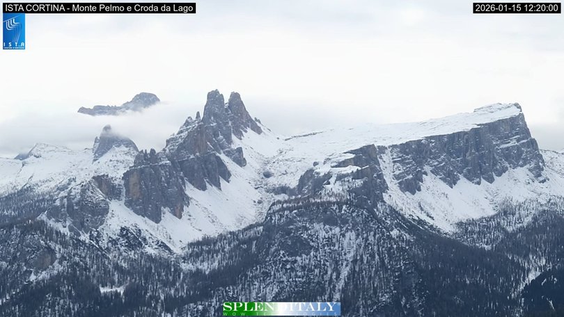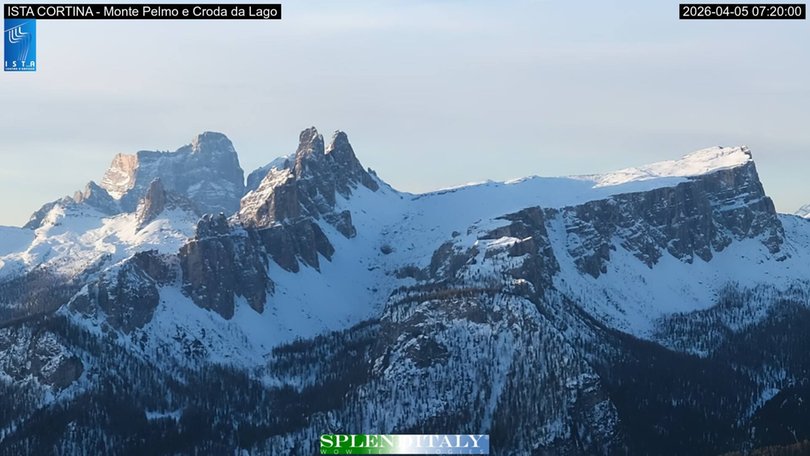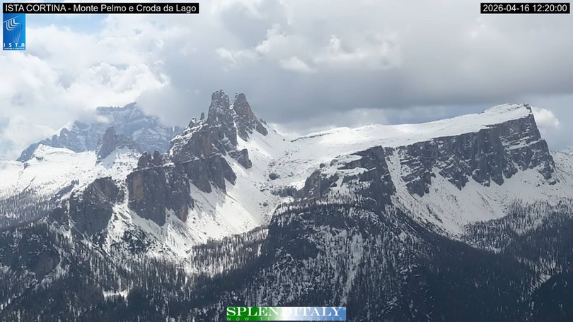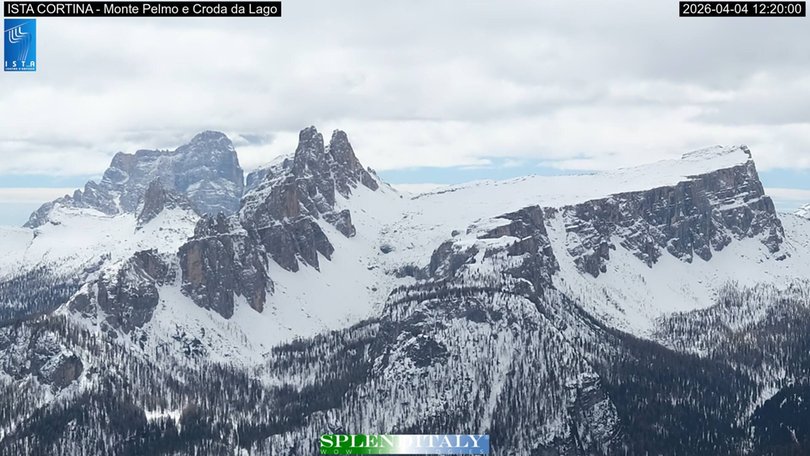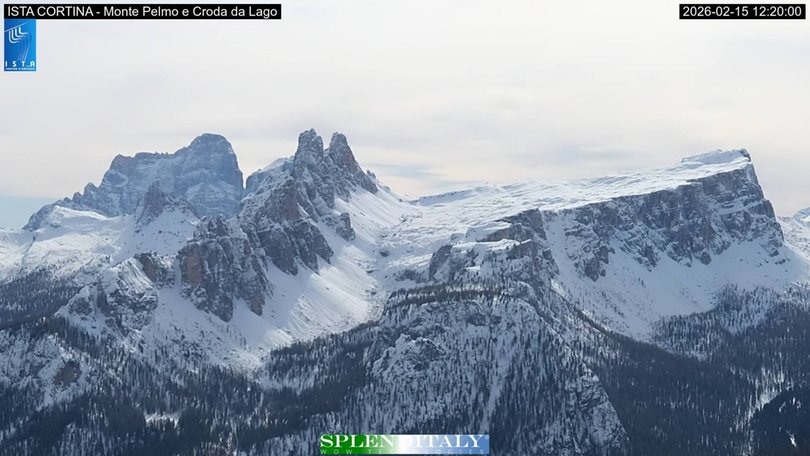 View on the Dolomites from the Ski resort Socrepes-Pocol-Tofana-Falzarego. In the foreground, the webcam offers unique glimpses on Croda da Lago (2.715m) and Lastoi de Formin (2.657m). In the background, stand out Monte Pelmo (3.168m) and Becco di Mezzodì (2.603m). In summer, the peaks are surrounded by green forests which turn to the thousand colours of autumn before being covered in snow in winter. Ideal live cam to discover the weather conditions in this part of the Dolomites.