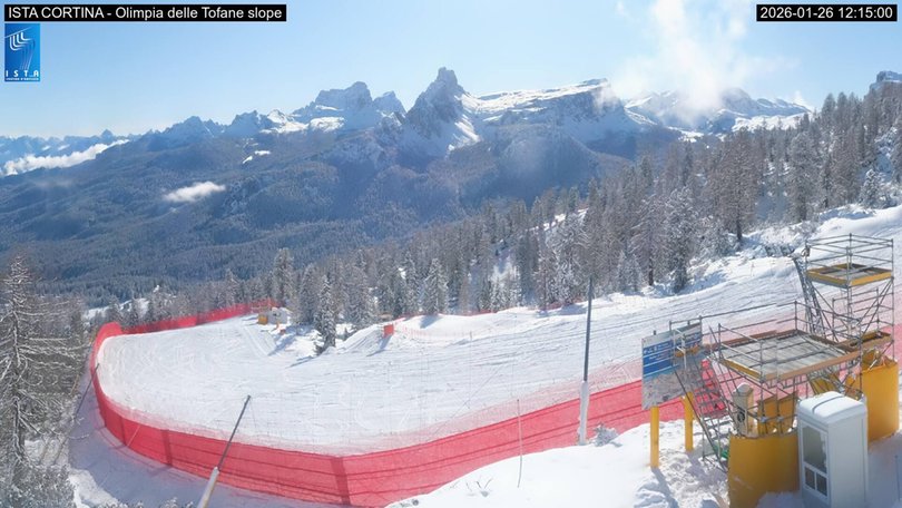 View on the slope Stratofana Olimpica in the Ski resort Socrepes-Pocol-Tofana-Falzarego, which has been hosting the annual women’s FIS Alpine Ski World Cup since 1993, both for Downhill and Super-G races. The slope, also known as Olimpia delle Tofane, owes its name to the Winter Olympic Games of 1956, when it was the scene of the men’s downhill race. The slope’s lenght measures 2.402m and covers an altitude difference of 760m with a maximum gradient of 56,1%! This webcam is the ideal observation point to discover the weather and snow conditions in the area of Cortina d’Ampezzo.