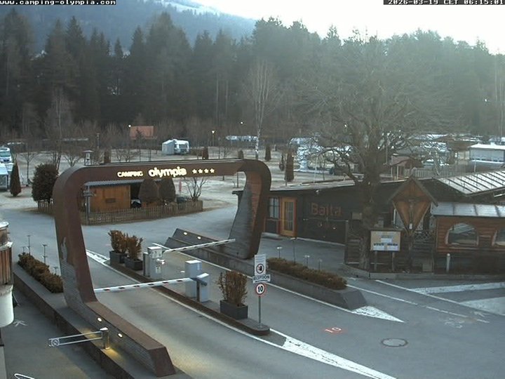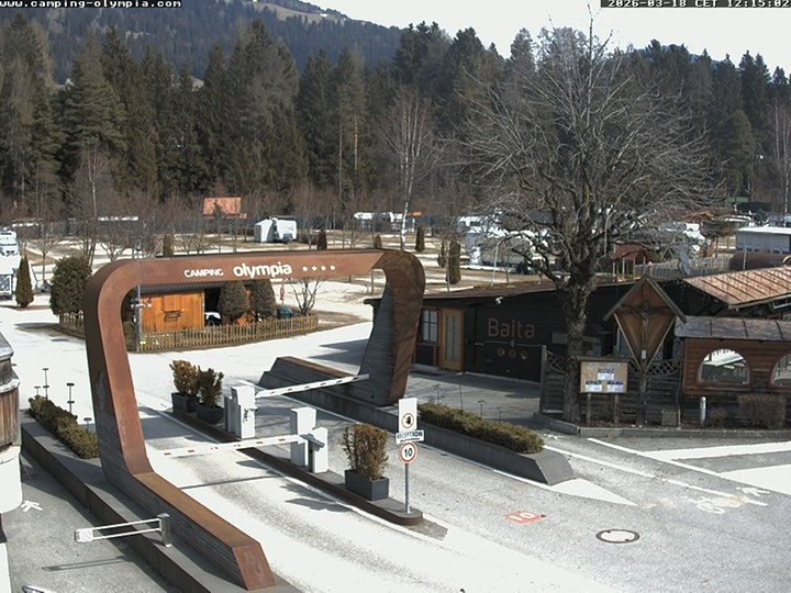 View on the entrance of the Camping Olympia in Dobbiaco / Toblach, in Alta Pusteria. Open the whole year round, the campsite offers 200 ample pitches and smaller tent sites. What is the weather like in Dobbiaco / Toblach? This webcam is perfect to discover it at any time!