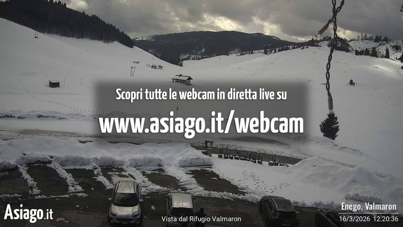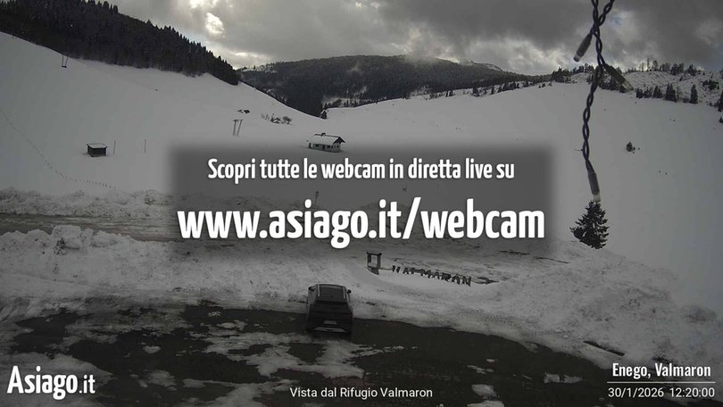 The webcam is installed at the Valmaron Refuge in Enego and offers a beautiful view of the Valmaron valley with its alpine huts. On the left, the slopes of Mount Lisser, in the eastern part of the Plateau of the Seven Municipalities. On the mountain, which dominates the eastern Valsugana, there is the Lisser fort which was built during the First World War to protect the old state border. In the distance you can see a glimpse of Mount Fior, famous for the city of rock, karst stones with a particular shape, and for the Greek line trenches of the Great War. With the images of this webcam, you can discover at any time the weather conditions in this area of the Asiago Plateau.