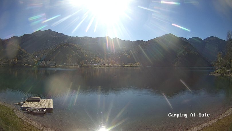 The webcam is located near the football field of Camping al Sole and offers an amazing view of Lake Ledro. In the foreground of the image, you can see the beach and the pier of the campsite while on the left side of the image, on the adjacent shore, you can see the village of Molina di Ledro. Among the peaks on the horizon is Mount Tremalzo (1.975 m), one of the most important of the Gardesane Prealps, known for its beautiful mountain bike trails. The Lake Ledo, with its crystal-clear waters, is one of the most beautiful in Trentino and, in addition to being swimmable, it is also suitable for sailing and windsurfing thanks to the presence of a light breeze. The area of Lake Ledro is also particularly appreciated by cyclists for the many different planned routes to be covered by bicycle. With this webcam you can see in real time the weather conditions in the Valle di Ledro.