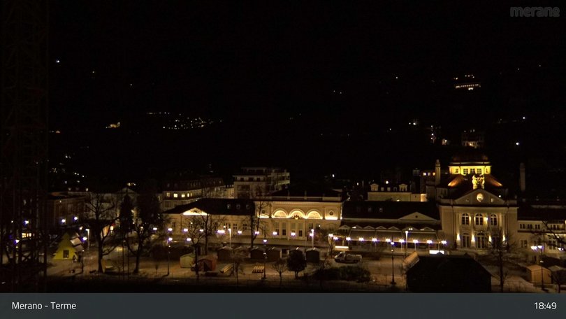 The webcam offers a view of the town of Merano / Meran from the terrace of the Hotel Terme Merano. From this privileged vantage point, you can see the Kurhaus of Merano, a Liberty-style (Art Nouveau) building that hosts many events, including the well-known Merano WineFestival. Alongside the promenade running along the Passirio River, which flows into the Adige, the view is characterised by the cathedral bell tower and the Powder Tower. Merano lies in the valley floor at the entrance to the Val Venosta / Vinschgau, the Val Passiria / Passeier Valley and the Val d'Adige / Etschtal, at the foot of the Gruppo di Tessa / Texel Group, which appears in the background of the image. Thanks to its mild climate, Merano boasts a long-standing tourist tradition – even Empress Elisabeth of Austria, known as Sissi, stayed here. The town is surrounded by hiking trails, some of them very well-known, such as the Tappeiner Promenade, the Marlinger Waalweg and the Merano High Mountain Trail. The Texel Group Nature Park is located right on the edge of the town and is also an ideal destination for hikers. These images are perfect for checking the weather in Merano, a municipality in South Tyrol / Südtirol, at any time.