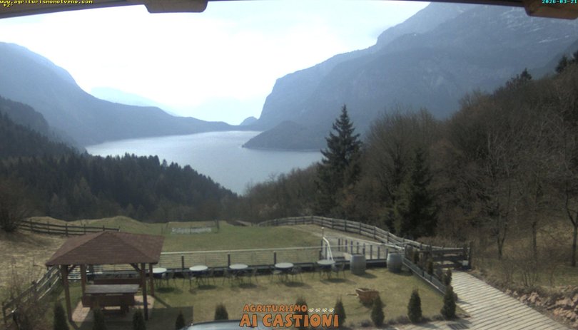 The webcam is installed at the Ai Castioni farmhouse in Molveno / Malfein and offers a panoramic view of Lake Molveno / Molvenosee in the Brenta Dolomites. In the foreground the beautiful garden of the farmhouse, in the background the Lake of Molveno known as "the most beautiful in Italy". Check out this webcam to find out the weather conditions in this area of Trentino, between the Brenta Dolomites and Paganella.