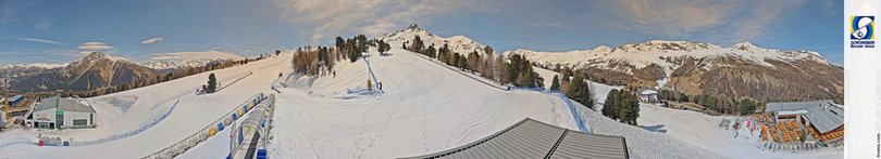 Panoramic view on the mountain station of Belpiano, in the ski area Belpiano - Malga San Valentino at Passo Resia. In winter, the webcam shows the ski school for children. The ski area offers 65km of slopes and 11 lifts which take you up to 2.350m, the perfect destination for ski and snowboard lovers and families! In summer, the area is a paradise for excursions by feet or with MTB, with 200 km of hiking and 50 km of MTB trails which guarantee an unforgettable experience.