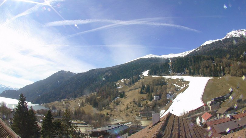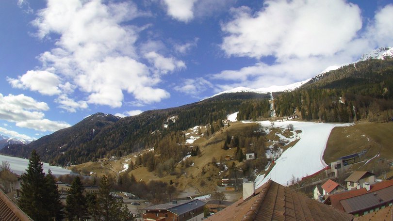 View from San Valentino alla Muta / St. Valentin auf der Haide towards the ski slope Haideralm with its lift, which is part of the Belpiano-Malga di San Valentino skiing, mountain biking and hiking resort on Passo di Resia. On the left, you may catch a glimpse of the Haidersee, the second-largest natural lake in the autonomous province of Bolzano. Take a look at this webcam to discover the weather and snow conditions in San Valentino alla Muta / St. Valentin auf der Haide, in proximity of the Reschen Pass, at Italy's border with Austria and Switzerland.
