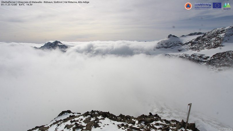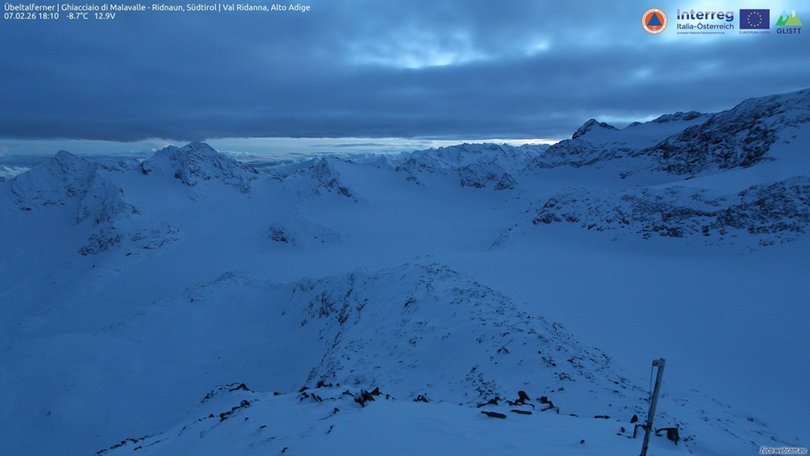 The webcam is located at the Gino Biasi al Bicchiere / Becherhaus Refuge, the highest in South Tyrol / Südtirol, at 3.195m above sea level. It offers a unique view shot of the Malavalle Glacier / Überltalferner. In the background, and with good weather, you can see the Botzer peak, the highest in the southern Stubai Alps / Stubaier Alpen. This webcam allows you to check at any time the weather conditions at high altitude in Ridnuan Valley / Ridnautal (Upper Eisack Valley / Oberes Eisacktal).