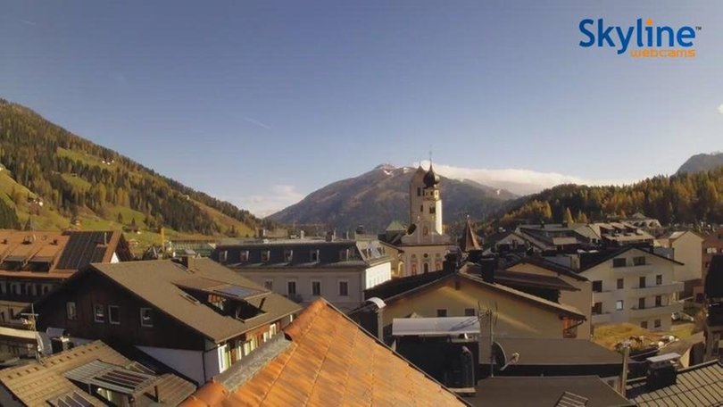 The webcam, installed at the Boutique Hotel Zenana, shows a beautiful view from above overlooking San Candido / Innichen. In the centre of the frame is the parish church of San Michele, with its circular bell tower it is an example of Tyrolean Baroque, and nearby is the Collegiate church, a Romanesque church. In the background you see Mount Elmo / Berg Helm which is the largest ski area in Alta Pusteria / Hochpustertal. This webcam is ideal to find out what the weather is like in this area of the Tre Cime Nature Park, in South Tyrol / Südtirol.