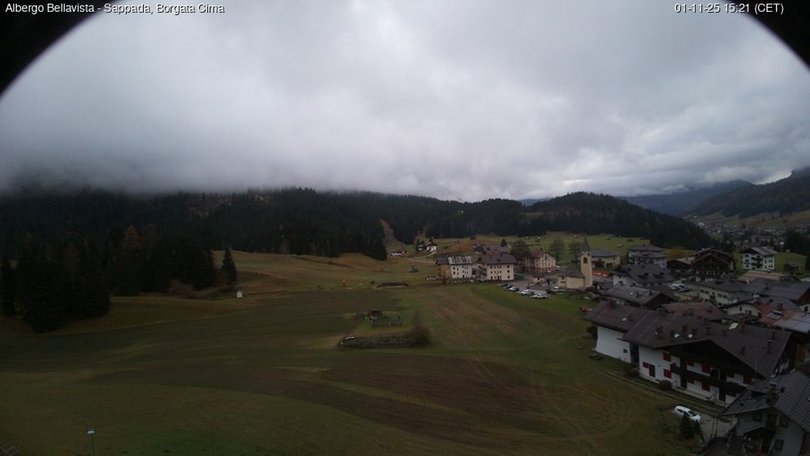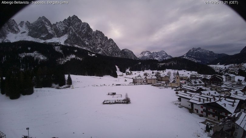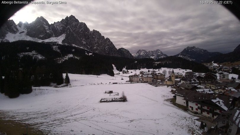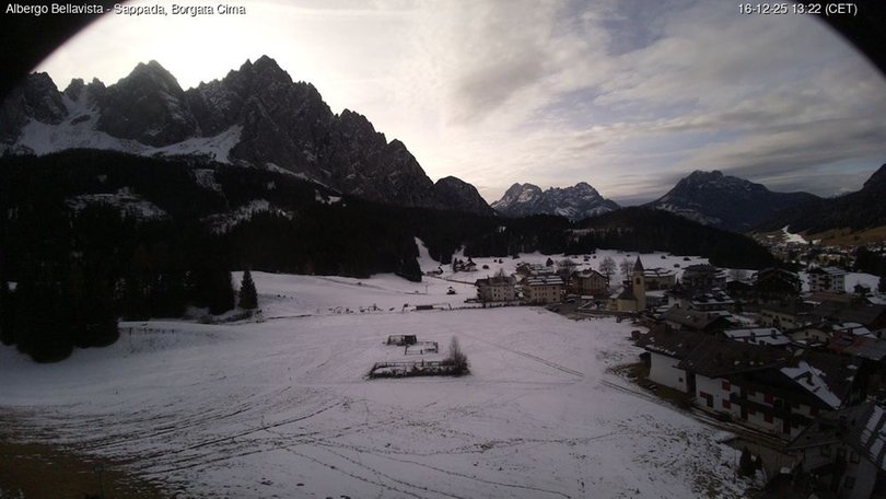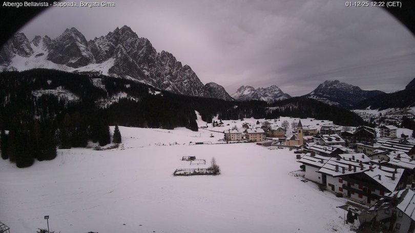 The webcam, from the Bellavista hillside of Cima Sappada faces towards Monte Siera and Creta Forata in the Carnic Alps / Karnischen Alpen. Mount Creta Forata takes its name from the characteristic hole that crosses its summit at 2.462m above sea level. On the right of the image, you can see a glimpse of Sappada Vecchia with the bell tower of the church of St. Oswald. This webcam of the Bellavista Hotel is ideal for discovering the weather conditions at any time in this beautiful location in Friuli Venezia Giulia / Friaul-Julisch-Venetien, on the border with Veneto / Venetien.