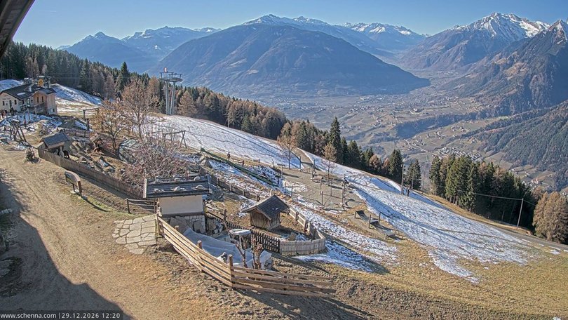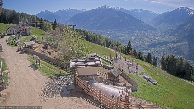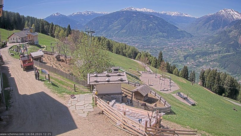 Panorama on the area of Merano / Meran with the villages Lagundo, Tirolo, Rifiano and Parcines, towards Val Venosta – Passo Resia. This webcam, installed on the Taser Alm, is perfect to always keep updated on the weather conditions of Merano / Merano and surroundings.