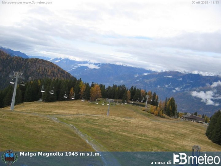 The webcam is installed near the Malga Magnolta which is within the Aprica ski and hiking area, and it offers a beautiful view of the Piana dei Galli ski slope. On the right of the image, you see the Ristoro Aprica which is at the mountain station of the Aprica-Malga Magnolta cable car, and at the valley station of the Piana Galli chairlift. The chairlift which is partly visible in the image, reaches 2,060m and allows access to the Piana dei Galli ski slope and the Gran Via del Gallo ski slope, a link route with the Palabione lifts.This webcam is ideal for discovering in real time the weather and snow conditions in the Aprica ski area in Valtellina / Veltlin.