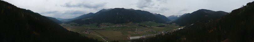In the image, the Gsies Valley can be seen to the right, running at right angles to the Puster Valley, which continues to the left as far as Plan de Corones. The webcam is located in the village of Pichl / Colle at the entrance to the valley, which extends northwards almost as far as Austria. With this webcam, you can check the weather conditions in Gsies, including the villages of St. Magdalena and St. Martin, and enjoy views towards Welsberg-Taisten / Monguelfo-Tesido in the Puster Valley.