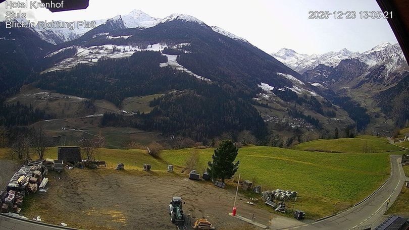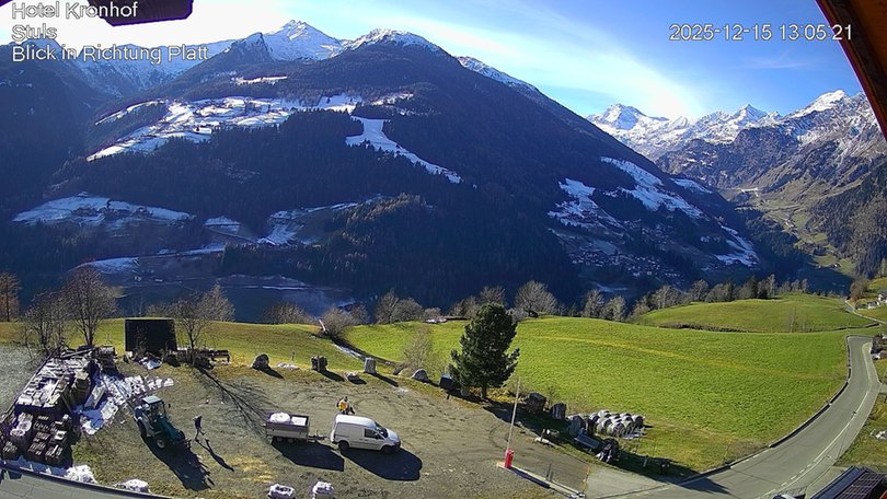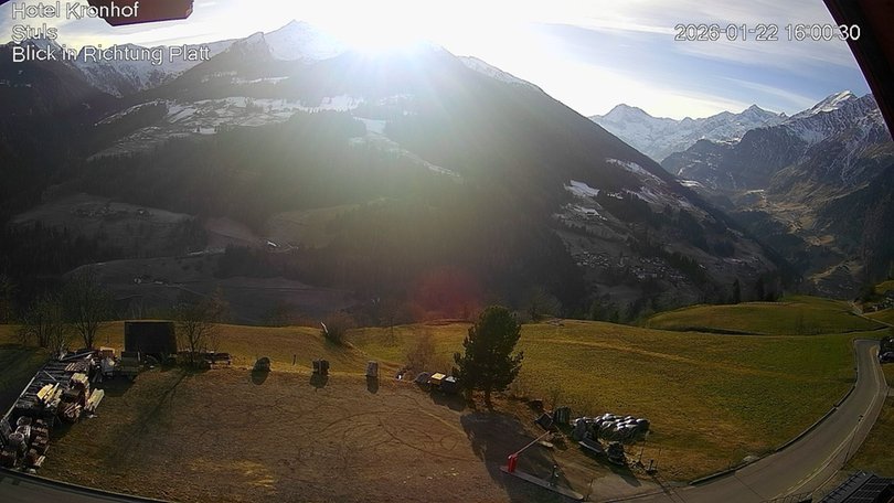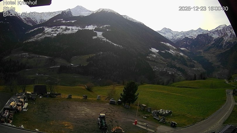 Panoramic view on Plata / Platt in Val Passiria / Passeiertal and on the surrounding mountains. The village is clearly visible at the centre of the picture, and – with any luck – you may also spot the S. Orsola Church. On the left, the Platter Berg or Strizonjoch rises up, while, on the right, the glance plunges in the Pfelderer Tal and moves forward to the highest peaks of the Gruppo di Tessa Nature Park. This webcam, installed on the Hotel Kronhof, is the ideal observation point to discover the weather and snow conditions in this part of the Val Passiria / Passeiertal.