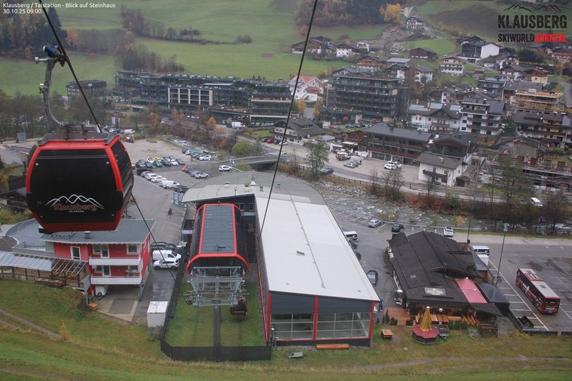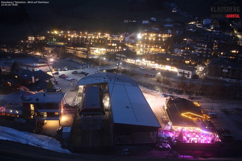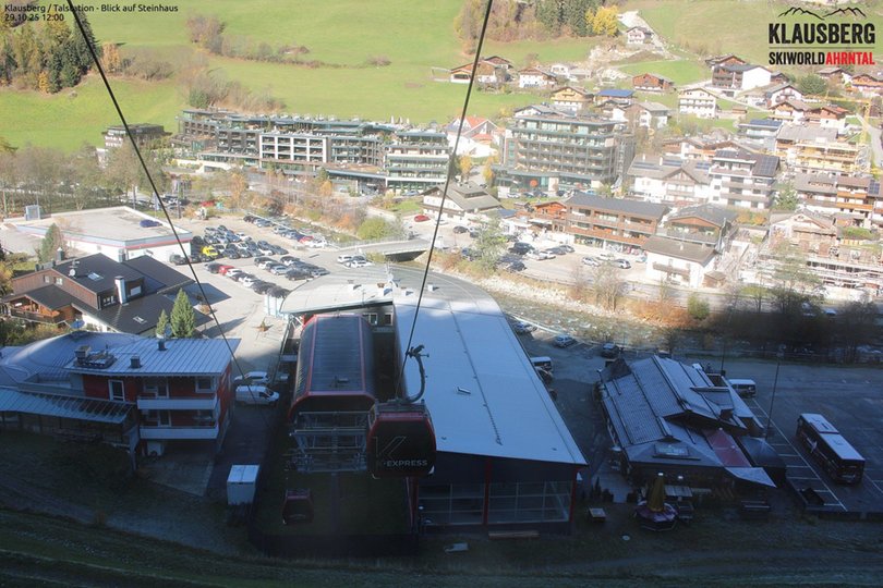 View from above on the valley station of the cable car K-Express in the skiarea Klausberg. The Skiworld Ahrntal in the Ahrntal is composed of the two ski areas Klausberg and Speikboden and offers 76 km of slopes with a total of 21 lifts. This webcam shows a part of the village Cadipietra / Steinhaus with its stream Aurino and is ideal to discover the weather and snow conditions in this part of the Ahrntal.