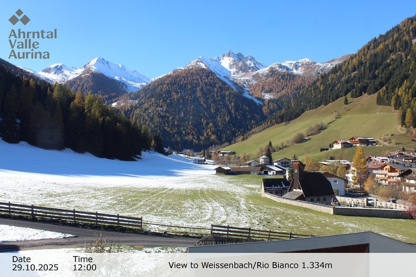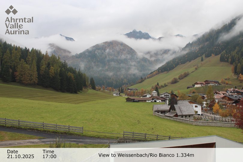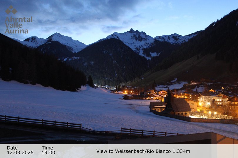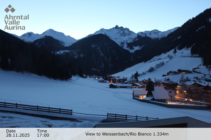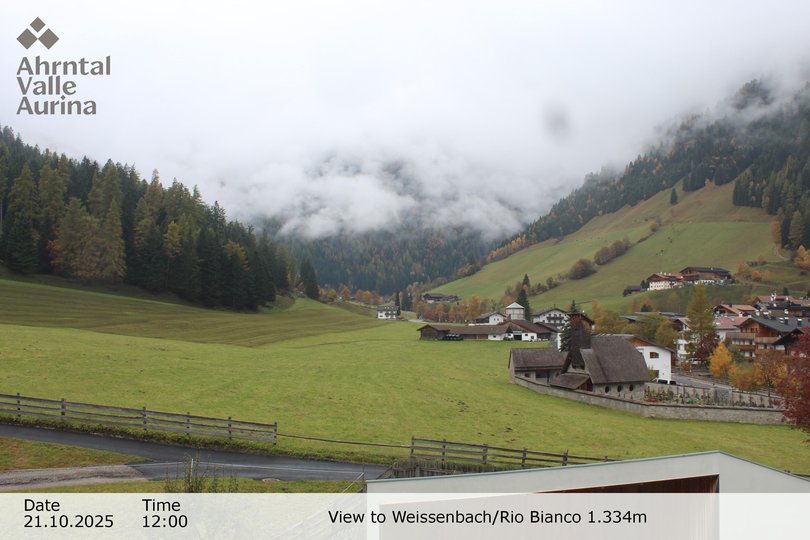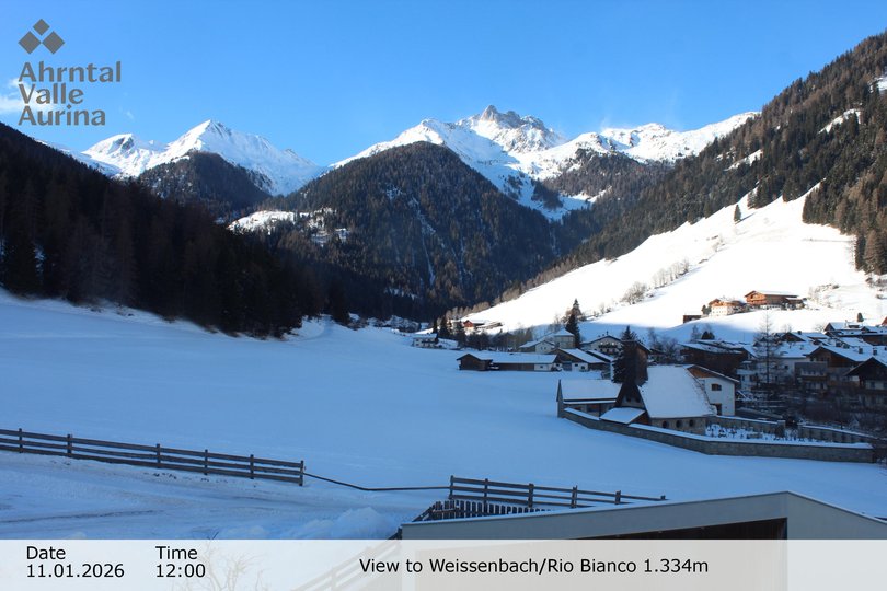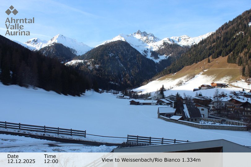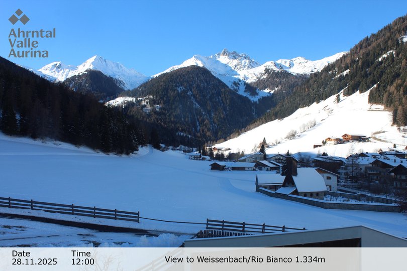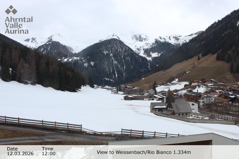 Panoramic view on Rio Bianco / Weissenbach, since always a well-known pilgrimage site, thanks to its church from the XVI century. The village, which owes its name to the white glacier stream that crosses it, is a popular destination in summer and winter. With this webcam the weather and snow conditions in Rio Bianco / Weissenbach are always only a click away!