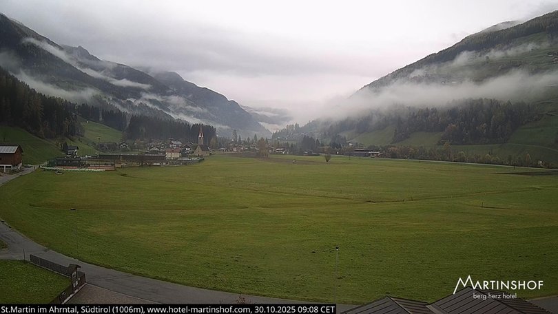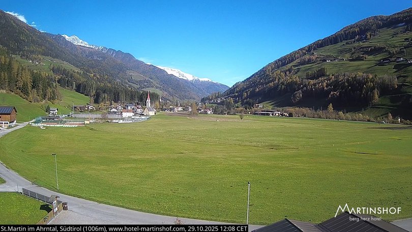View form the Hotel Martinshof towards east, on the village San Martino / St. Martin in the Ahrntal valley with its church. San Martino / St. Martin is part of San Giovanni in Valle Aurina / St. Johann im Ahrntal, a popular destination in the mountains for both summer and winter holidays. This webcam offers a beautiful glimpse of the Ahrntal valley, the northernmost part of Italy.
