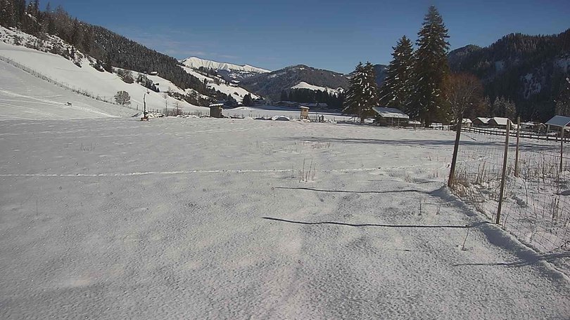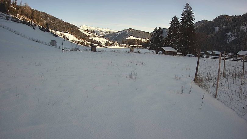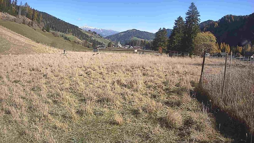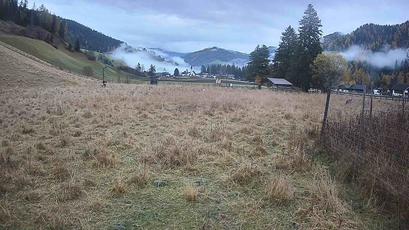 The webcam offers a wonderful glimpse over part of the Braies Valley / Pragstertal. In the background the Corno di Fana / Pfannhorn, a well known destination for walks in Alta Pusteria / Hochpustertal. At the bottom of the image you can see the village of San Vito in Braies / Sankt Veit in Prags with the 14th-century Gothic-style parish church. In the foreground, the fallow deer enclosure next to the Trenker Hotel, where the webcam is installed. With a little luck, it is possible to see the animals. This webcam is ideal for discovering the weather in this area of the Fanes-Senes-Braies Nature Park / Naturpark Fanes-Sennes-Prags in South Tyrol / Südtirol.